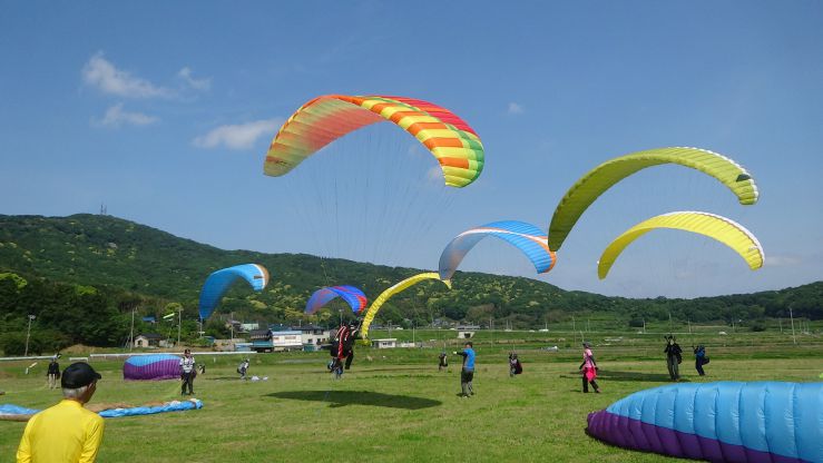 広~い空域・テイクオフ(離陸場)、そして関東最大級の広々としたランディング(着陸場)!そしてこのエリアを使用するのは「こまち」だけ。他スクールのパラグライダーと混み合う事がなく、落ち着いてレッスンを受けられます。