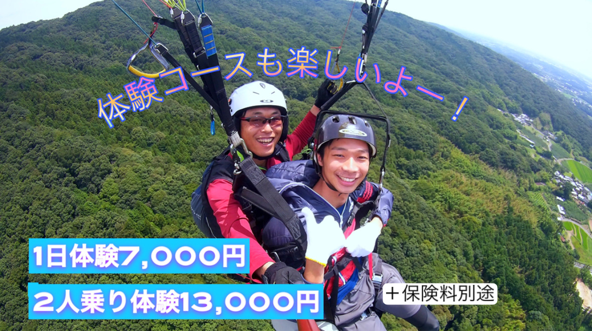 インストラクターとの二人乗り(タンデムフライト)付き人気のコースが14000円➝13000円